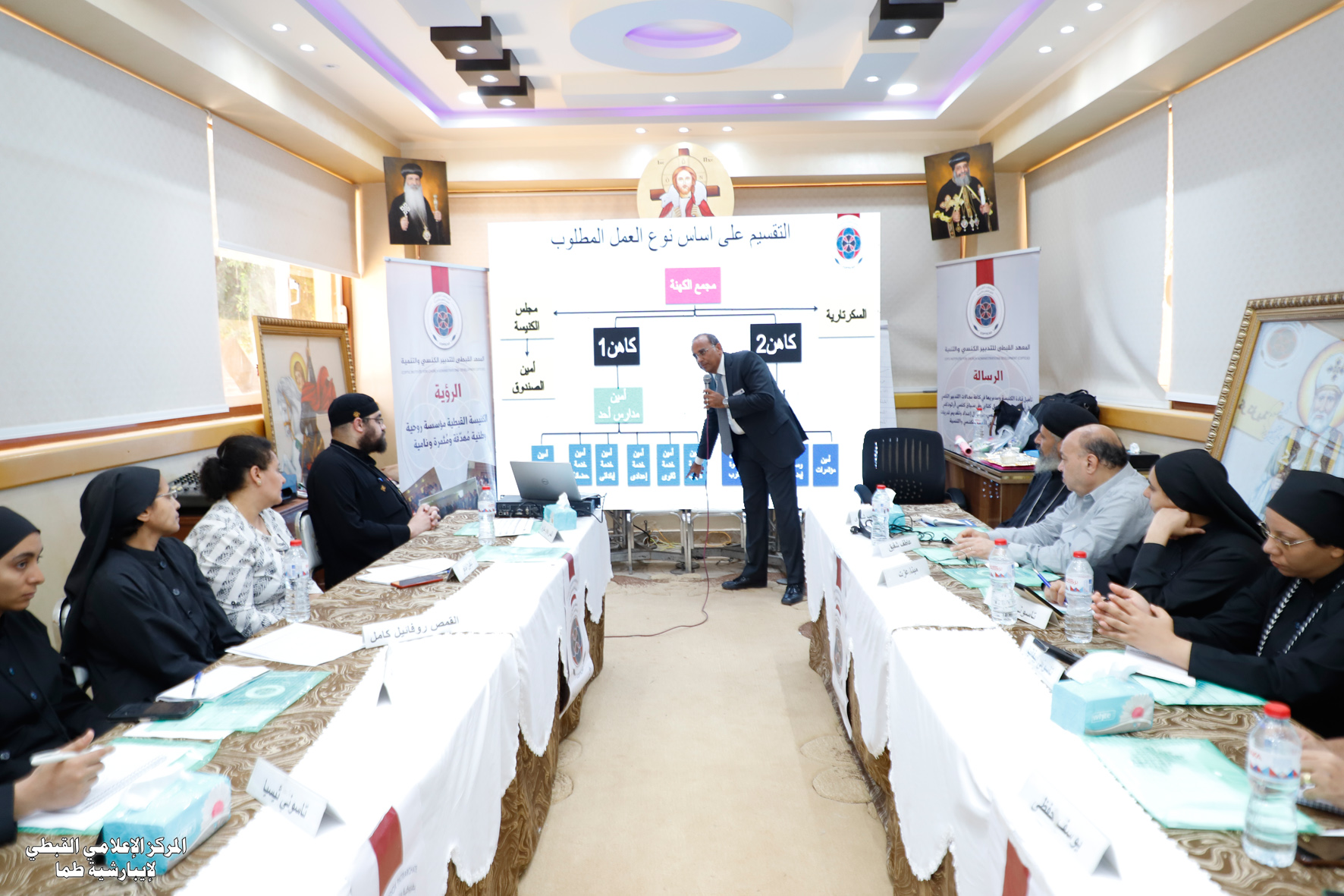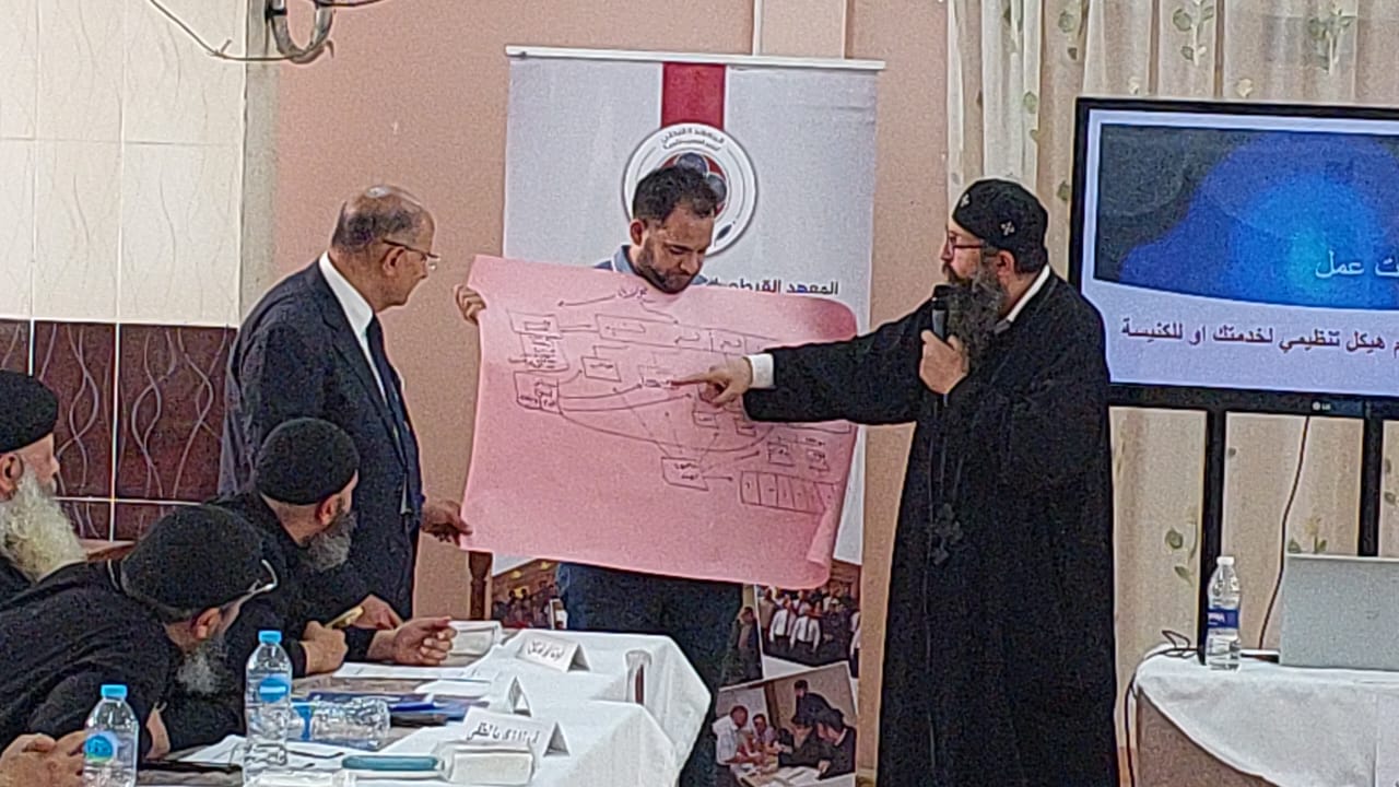 The basic training course extends from August 5 to 10, 2024, and is presented by specialized trainers and professors from the Coptic Institute for Church Management and Development (COPTICAD), led by Dr. Magdy Latif El-Sindy, Dean of the Institute. The training course included: concepts and practical methods in church management and institutional work in the Church, the pillars of wise management (sound administration or governance in the Church), principles of development from a Christian perspective, and the role of the priest in managing the Church as a system of institutional work.