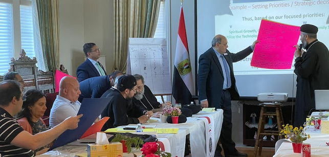 The training is provided by a number of professors from the Coptic Institute for Church Management and Development. (COPTICAD)The course is attended by two groups of priests, church council leaders, and servants (20 trainees). This is the second course offered outside Egypt in the United States of America, and is presented in both Arabic and English. It is an implementation of the recommendations of the Holy Synod's eighth seminar in November 2021..